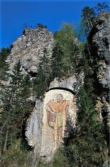 Es waren Fuhrleute aus dem Vellachtal, die 1861 erstmals das zwölf Meter hohe Bildnis des Schutzpatrons der Fuhrleute, Reisenden und Autofahrer auf den Fels malen ließen.