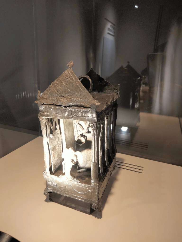 Kein Wunder, dass man sich daher seit jeher an höhere Mächte um Beistand für einen glücklichen Reiseablauf gewandt hat, während dies heutzutage wohl eher selten geworden ist, obwohl sich in der Gegenwart ganz neuartige Gefahren in Zusammenhang mit einem Ortswechsel aufgetan haben: Flugzeugabstürze, versinkende Schiffsfähren, Busabstürze, Auto-Massenkarambolagen etc. Spüren wir ein wenig nach, auf welche Weise man sich früher der Hilfe starker, wenn auch irrationaler Mächte versichern wollte. Ich kenne zwei sehr eindrucksvolle Beispiele aus der Antike. Selbst besucht habe ich das Museum in Comacchio, wo vor der Po-Mündung ein römisches Schiff im Sturm gesunken war und 1981 mit seiner gesamten Fracht gefunden wurde, die nun in der musealen Sammlung ausgestellt ist. Darunter befinden sich mehrere von Privatpersonen auf ihrer Schiffsreise mitgeführte Hausaltärchen (ca 10 cm hoch). Vor ihnen konnte man auch an Bord persönliche Andachten abhalten.
