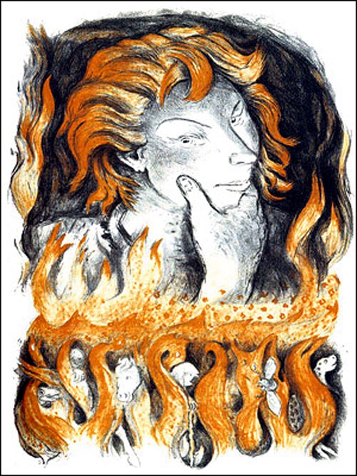 Wollte man eine Zusammenfassung geben, dann müsste man sagen, das „Feuer“ ist also so ambivalent wie jene es symbolisierende germanische Götterfigur Loki/Loge – womit sich der Kreis schließt. Im „Feuer“ stehen zu bleiben, wird den Unwürdigen und Leichtfertigen2 ein psychisches Verderben bringen, die verharmloste Glut wird ihnen Depressionen bringen, ein seelisches Absterben – und hoffentlich auch all denen, die glauben, sie verstünden etwas von wahrer, und das heißt demutsvoller Esoterik, die sich eingesteht, dass sie wie Faust in seiner Studierstube in Wahrheit weit davon entfernt ist, irgendetwas davon zu verstehen, „was die Welt im Innersten zusammenhält“. Scharlatane, Gurus, „Qualküren“3 und Hexen, die nur vollmundig angeberisch den Schein erzeugen, mit dem „Universum“ auf Du und Du zu sein. Aus Geldgier befriedigen sie auf Kosten Gutgläubiger ihren brennenden Durst nach immer mehr gewinnbringenden neuen Heilslehren, die sie meinen in Schnellsiedekursen (angeboten von noch größeren Rosstäuschern und Bauernfängerinnen) erlernen zu können. In Wirklichkeit kratzen sie nicht einmal an der Oberfläche, denn solches (Geheim)wissen ist ihnen nicht adäquat, weil es aus ganz anderen Kulturen und Anthropologien stammt. Möge ihr gieriger Schlund von der Flamme der Wahrheit versengt und verätzt werden.