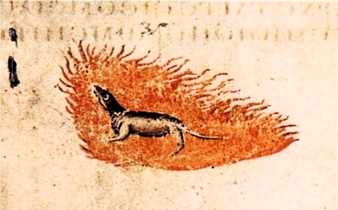 Doch nicht nur der ungebildete Pöbel vertrat solche Ansichten, sondern auch ein als „gelehrt“ geltendes Werk wie der Physiologus und sogar die Kirche. So erwähnte der Kirchenvater Augustinus im 21. Kapitel seines Hauptwerks „De Civitate Dei“, dass der Salamander ohne Schmerzen im Feuer lebe, „weil seine Natur diesem Element angepasst“ sei, eine Ansicht die etwa auch der bedeutende Isidor von Sevilla in seinen „Etymologiae“ bestätigt. Auch Paracelsus, einer der Hauptvertreter der Elementargeisterlehre, weist in seinem Werk „Liber de nymphis, sylphis, pygmaeis et salamandribus…“ den Salamandern das Feuer als Lebensraum zu.