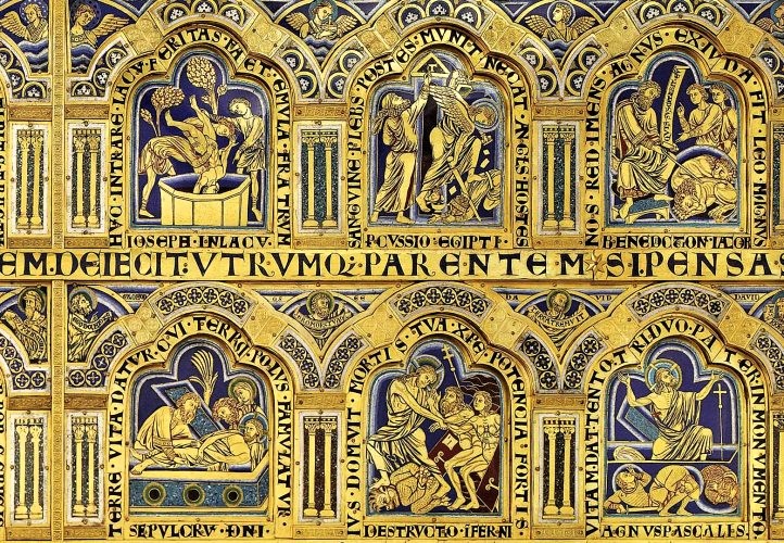 Diese Schatztruhe, die der Meister Nikolaus von Verdun geschaffen hat, ist in ihrer Art gemeinsam mit dem im österreichischen Klosterneuburg befindlichen Verduner Altar von seiner Hand das größte Kunstwerk in dieser Technik.