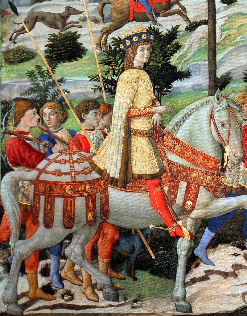 Er hat aber auch einige Medici und ihre Gefolgsleute verewigt. Der mittig auf dem Schimmel sitzende, strahlende junge Mann ist Lorenzo, der zurecht den Beinamen „der Prächtige“ trug.