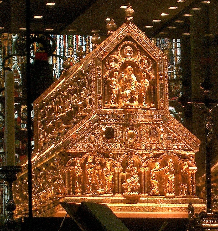 Nach der Eroberung Mailands (1162) werden die Gebeine der Könige (oder was eben als solches angesehen wurde) wieder zum Spielball politischen und wirtschaftlichen Kalküls. Barbarossa hatte einen engen Berater namens Reinald von Dassel. Dieser war Erzbischof von Köln, Erzkanzler für Italien, und nahm maßgeblich Einfluss auf die kaiserliche Politik in Italien und in der Auseinandersetzung mit dem Papsttum im Besonderen. Man erinnert sich, dass es schon seit dem Vater Karls des Großen stets eine Abhängigkeit der deutschen Kaiser vom Papsttum gab. Wenn aber Barbarossa im Besitz der Reliquien der sozusagen „ersten christlichen Könige“ war, und diese in sein Reich überführen ließ, erlangte er eine enorme sakrale Rechtfertigung auch ohne das Papsttum (seinen Nachfolgern hat dies freilich auch nicht viel geholfen). So schenkte er in einem geschickten Schachzug die Gebeine seinem Getreuen Rainald von Dassel, der sie mit ungeheurem Pomp nach Köln, seinem Erzbistum, überführen ließ, wo sie in dem um 1200 entstandenen Dreikönigsschrein beigesetzt wurden.