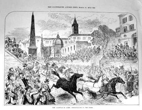 Die Pferderennen am Korso wurden durch die laizistische Verwaltung erst 1874 in Rom abgeschafft, das damals seit drei Jahren Hauptstadt des geeinten Italien war. Anlaß war, dass ein Knabe von Pferden zu Tode getrampelt worden war.