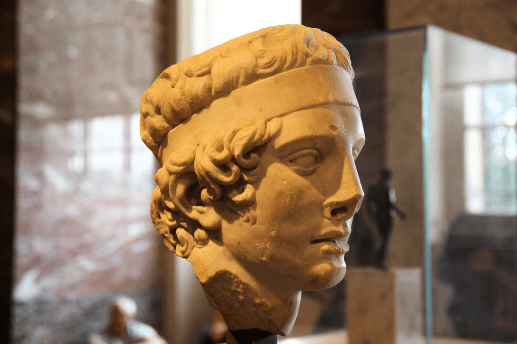 Doch noch einmal zurück zum „Stirnband des Siegers“. Es machte eine ungeheure Karriere. Östliche antike Herrschergestalten (oder z.B. auch der berüchtigte Tyrann von Syracus, Dionysius I.) wollten nämlich alsbald, dass dieses triumphale Zeichen der Unbesiegbarkeit auch auf sie übergehen möge.