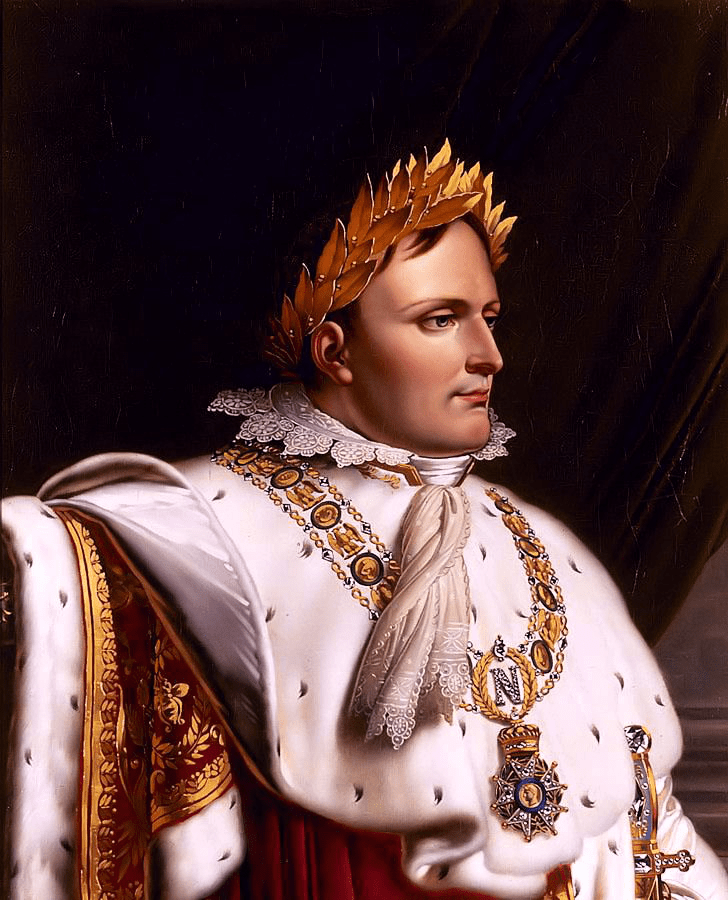 Typischerweise ließ sich sogar noch Napoleon mit einem goldenen Lorbeerkranz in seinem Krönungsornat malen.