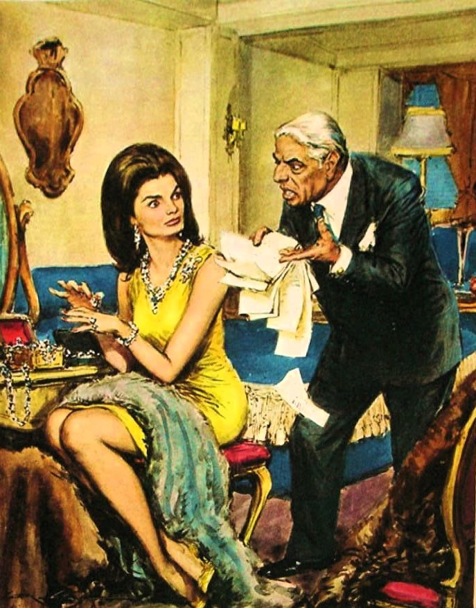 Aber der private Stern des Pseudo-Krösus begann auch zu sinken. Mit Jackie hatte er sich nämlich einen gewaltigen Splitter eingezogen. Sie betrieb einen enormen Luxus und gab Unsummen beim Shoppen aus. Selbst er mit seinem nicht enden wollenden Vermögen war darüber „not amused“ und verlieh ihr den Namen „Supertanker“, darauf anspielend, dass sie so viel kostete wie ein wertvolles Schiff. Onassis wurde immer seltener mit Jackie gemeinsam gesehen, dafür immer wieder einmal mit der Callas. Wörtlich bezeichnete er seinen Schritt, die Kennedy-Witwe geheiratet zu haben, als den größten Irrtum seines Lebens. Er erwog bereits die Scheidung, da raffte ihn ein Herzinfarkt von dannen. So musste er – übrigens genau wie sein antiker Landsmann Midas3 – am Ende erkennen, dass Geld und Gold nicht alles im Leben bedeuten würden, sondern sogar ein wahres Glück verhindern können.