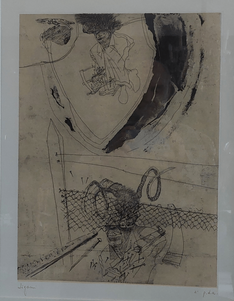Ich hätte es nach meiner Pensionierung sehr vermisst, wäre ich nicht privat anlässlich eines runden Geburtstags durch die Großzügigkeit meiner Familie selbst privat in den Besitz einer Zigaina-Radierung gelangt. Und das war so gekommen: Ich hatte die gerade vorhin erwähnte Verkaufsausstellung mit meiner sehr kunstsinnigen älteren Tochter besucht, freilich ohne jegliche Absicht ein Kunstwerk persönlich zu erwerben. Bei einem Bild hielt ich besonders lange inne und meinte, dass ich mich und mein Leben in dieser Komposition irgendwie intuitiv wiedererkennen würde.
