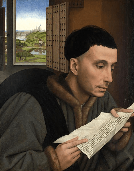 3Es handelt sich um einen Ausschnitt aus dem Bild „Die Krönung Mariä mit Heiligen“ (zwischen 1437 und 1445) von Fra Angelico (eigentlich Fra Giovanni da Fiesole; 1387-1455). Das Fresko befindet sich in Florenz, S.Marco, Obergeschoß, Dormitorium, Zelle Nr.9 (Ostgang). Quelle (bearbeitet): https://de.wikipedia.org/wiki/Datei:Fra_Angelico_-_Coronation_of_the_Virgin_%28Cell_9%29_-_WGA00543.jpg