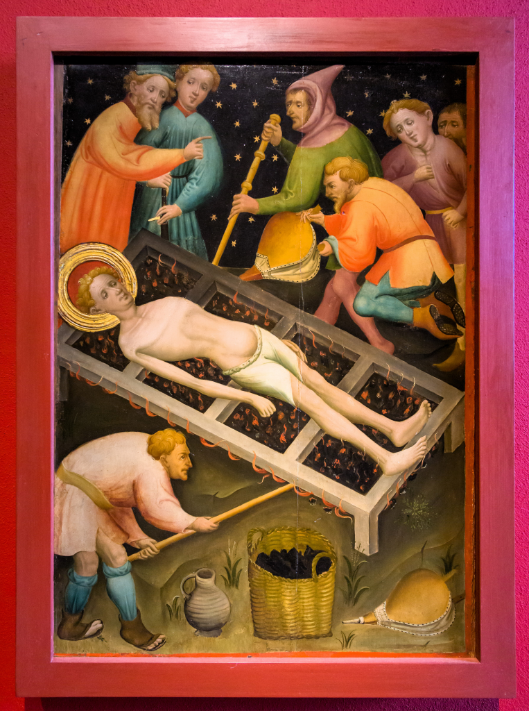 Nun zu euch, Bartl und Laurenzi! Ich hatte euch ja für die großen Waldbrände eingeteilt, da dem einfachen weltlichen Volk ja über Legenden irgendwie bekannt wurde, dass du, Bartholomäus, wegen deiner Heizerqualitäten von den Römern schon beim Rösten des Laurentius eingesetzt warst, bevor du bald darauf selbst das Martyrium erlitten hast. Gemäß dem irdischen Heiligenkalender heißt es ja: „Schür, Bartl, schür, in 14 Tagen ist’s an dir.“ Und du, Laurentius bist ja als ‚Grillmeister‘ avant la lettre bekannt.