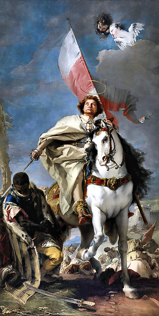 Nun meldeten sich noch die Soldatenheiligen Demetrios von Saloniki, Theodoros von Eutachïta und Georg unter der Führung des Ranghöchsten unter ihnen, dem Matamoros Jakobus dem Älteren zu Wort. (Letzterer sah übrigens tatsächlich so prächtig aus, wie ihn G. B. Tiepolo gemalt hatte.):