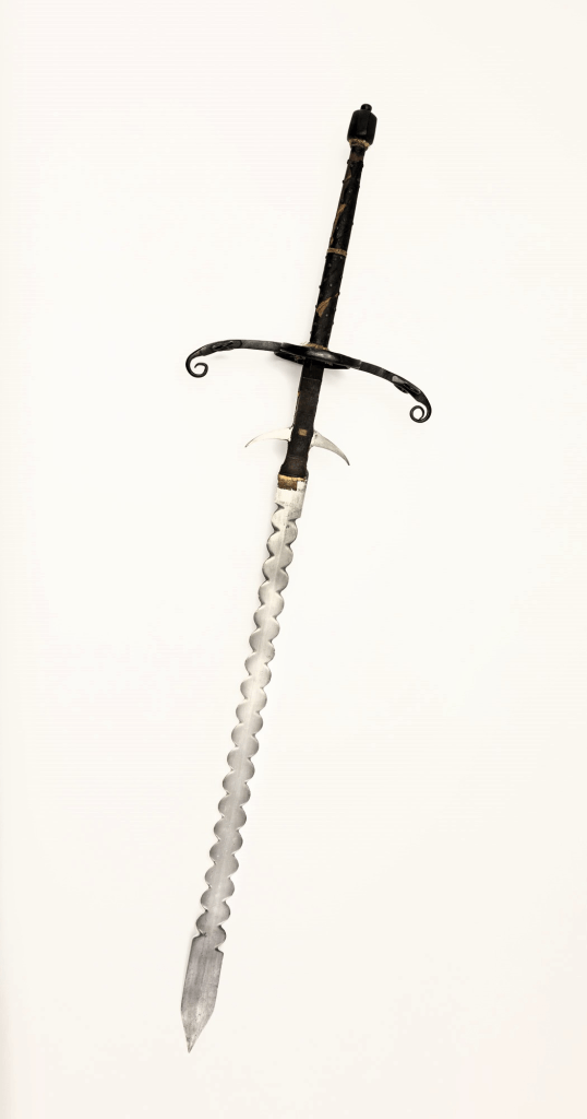 2Beidhändig geführtes Schwert mit einer wellen- oder flammenförmigen Klinge.