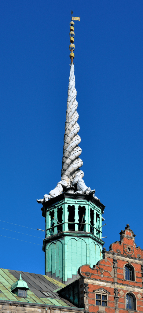 Es ist eines der ältesten Gebäude der dänischen Hauptstadt und stammt aus dem 17. Jahrhundert, als König Christian IV. Kopenhagen zu einer internationalen Handelsmetropole machen wollte. Dazu brauchte er eine Börse, an der die verschiedenen Handelsströme zusammenlaufen sollten. Und da gegenwärtig alles jenem liberalen Kapitalismus geopfert wird, der damals schon sich allmählich zu regen begann, mittlerweile aber voll aus dem Schlangenei gekrochen ist, werde ich mein Missfallen auch in diese profane Richtung schleudern. Als erstes, Michael, lässt du den Dachreiter einstürzen, damit man den Zusammenhang mit Paris begreift. Die Erbauer wollten mit den ineinander verwobenen Drachen-Schwänzen zwar die engen Beziehungen zwischen Dänemark, Norwegen und Schweden hervorheben, und die Ungeheuer sollten außerdem ausdrücklich vor Feuersgefahr beschützen. Was ihnen im Lauf der Jahrhunderte auch gelang. Die Börse blieb selbst damals unversehrt, als die Nachbargebäude und sogar das Schloss Christiansborg einem Brand zum Opfer fielen.