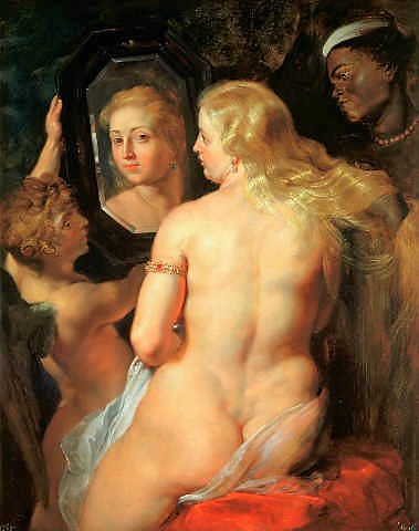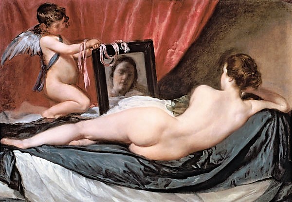 Ihr Busen war straff, die Nippel leicht nach oben weisend, der Bauch von einer ganz zarten, femininen Wölbung, die Taille ähnelte im Umfang auch ohne Korsettschnürung jener der Kaiserin Sisy, die Pobacken waren die letzten Male bekanntlich so herrlich vom Maler Diego Velásquez in seinem jetzt in der Londoner National Gallery befindlichen Gemälde „Venus vor dem Spiegel“,