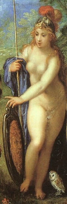Und Rubens war beileibe nicht der einzige Barockmeister, der Athenes Formen für wert erachtete, für die gleichzeitigen Freunde der bildenden Künste und der Fülle vollendeter weiblicher Schönheit festgehalten zu werden. Da gab es etwa den um ca. 1500 geborenen Manieristen Gian Giacomo Caraglio, italienischer Zeichner, Kupferstecher, Architekt und Medailleur. Weiters können wir hier Hendrik van Balen den Älteren (um 1575 – 1632) , seines Zeichens flämischer Maler und Glasmaler, anführen
