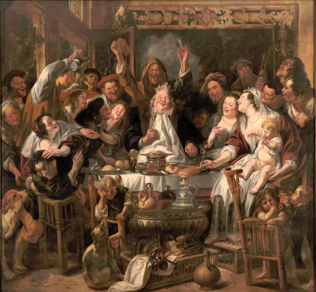 Nun aber thronte er in voller Lust inmitten des Gelages, gleich dem Bohnenkönig in den Gemälden von Jacob Jordaens.