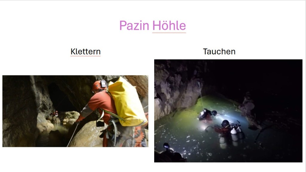 Wenn man einer Höhlenforschergruppe angehört, kann man als Kletterer oder sogar als Taucher ein Stück lang dem unterirdischen Fluss auf abenteuerliche Art und Weise folgen.