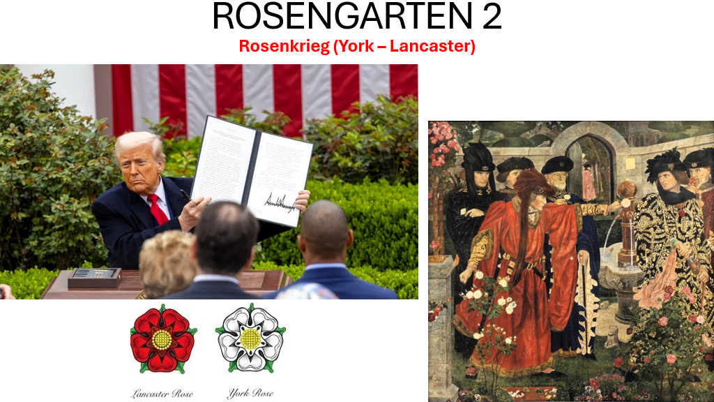 Derzeit scheinen ja durch allerneueste Entwicklungen die Farben der Rose Amerikas und jener Europas diametral auseinanderzudriften – wie einst jene der beiden verfeindeten englischen Adelshäuser.