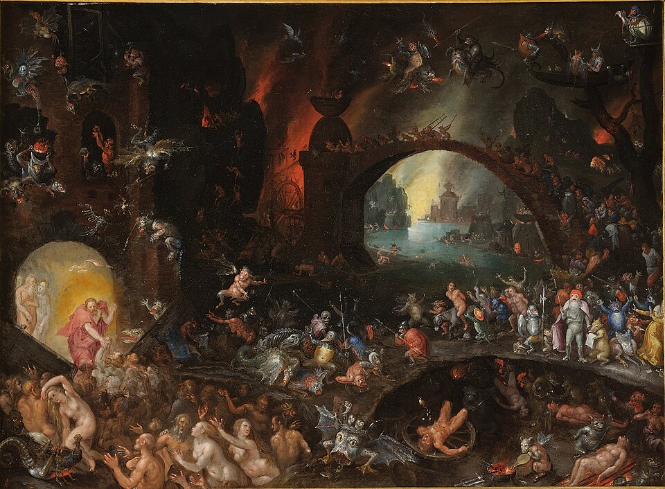 Noch ein abschließender Spaß sei erlaubt. Vielleicht hatte Tizian vor Augen, wo Jesus vor seiner Auferstehung gewesen war. Nun, das war die „Vorhölle“, wo er Adam und Eva mit all den Gerechten befreite. Die Teufelsbrigaden wollten aber nicht ganz kampflos aufgeben, sodass es zu argen Scharmützeln kam. Durch die vom Salvator eingetretene Türe strömten furchtbar stinkende Schwefeldünste aus dem Inferno heraus. Vielleicht wollte der Erlöser diesen Gestank durch seinen Höhenflug einfach gentlemanlike loswerden, bevor er sich Magdalena näherte.