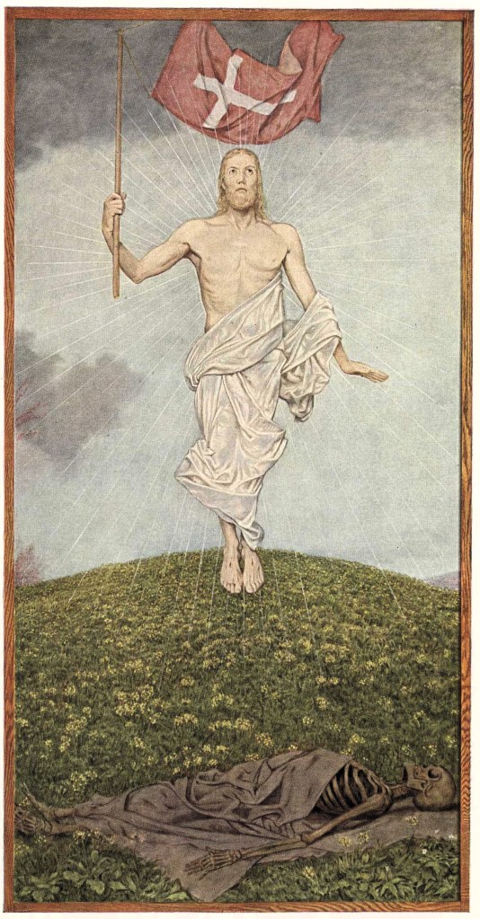 Bewegt man sich beim Thema „Auferstehung“ in Richtung auf die jüngere Kunstgeschichte, so kann man auf unerwartete Lösungen stoßen, wie bei diesem Beispiel aus dem „Monatskalender“ (1906-1908) von Hans Thoma.
