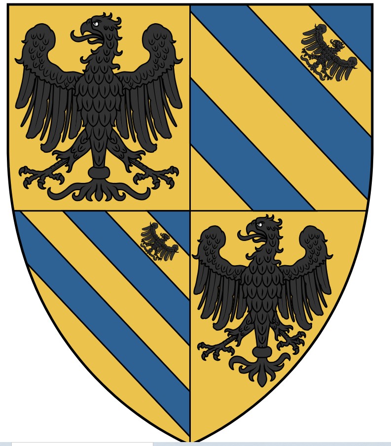 Kaiser Friedrich II. ernannte die Montefeltro dann 1213 zu Grafen von Urbino. Ob damit zusammenhängt, dass gelegentlich auch der doppelköpfige Reichsadler im Wappen von Urbino (neben den später dazugekommenen päpstlichen Schlüsseln) vorkommt, oder ob sich dabei eher um einen Irrtum handelt, kann ich mit dem mir zur Verfügung stehenden Instrumentarium nicht entscheiden.