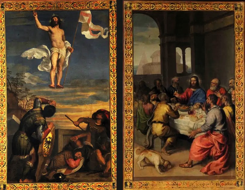 Das Werk und wurde zwischen 1542 und 1544 in Venedig im Auftrag der Familie della Rovere angefertigt, die es für die Corpus Domini-Bruderschaft in Urbino benötigte. Unmittelbar nach seiner Ausführung im Jahr 1545 wurden die beiden Ansichten durch den Maler Pietro Viti getrennt und eingerahmt und dann auf beiden Seiten des Altars der Kirche der Bruderschaft aufgestellt. 1 Damals war Guidobaldo della Rovere seit 1538 Herzog von Urbino. Seinen Vater, Francesco Maria della Rovere hatte bereits auch kein Geringerer als Tizian gemalt: